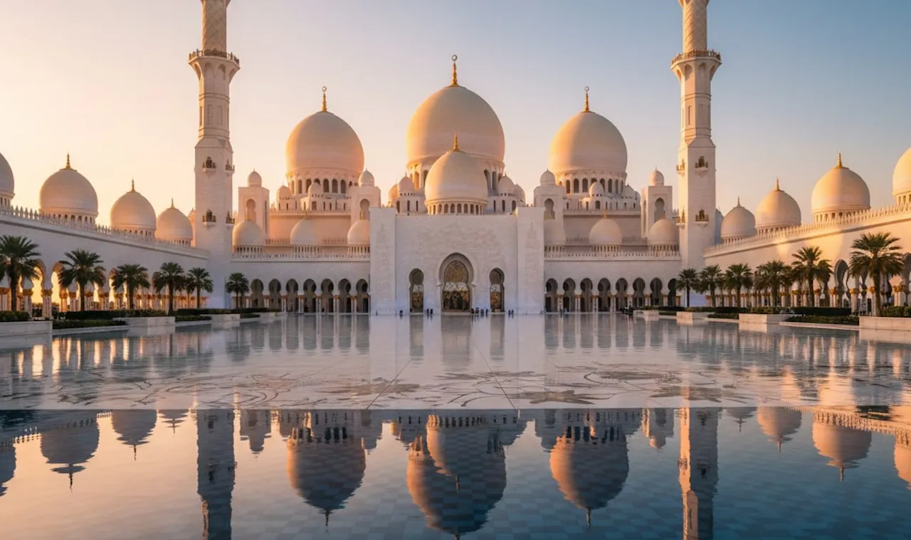 The mosque is one of the most photographed landmarks in Abu Dhabi. Arriving just before sunset allows you to capture the golden light reflecting off the domes and pools. Evening lights transform the mosque into a magical spectacle.