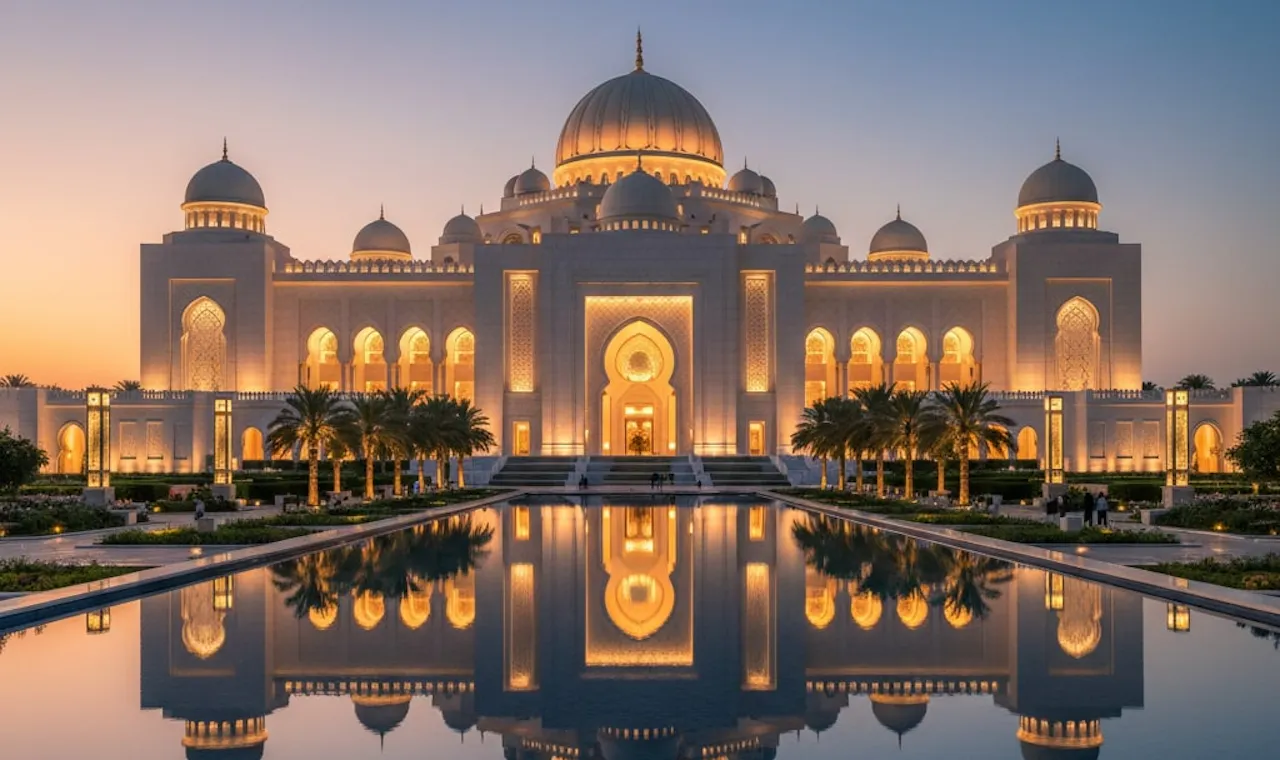 The palace is a stunning combination of traditional Arabian design and modern comfort. Built on almost 100 hectares of beautiful grounds, the structure has 114 domes, majestic archways, and interiors embellished with marble, gold, and mother-of-pearl. The central dome, which stands 72 meters tall, is one of Abu Dhabi's most recognizable architectural features.