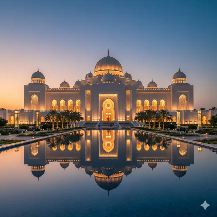 The palace is a stunning combination of traditional Arabian design and modern comfort. Built on almost 100 hectares of beautiful grounds, the structure has 114 domes, majestic archways, and interiors embellished with marble, gold, and mother-of-pearl. The central dome, which stands 72 meters tall, is one of Abu Dhabi's most recognizable architectural features.
