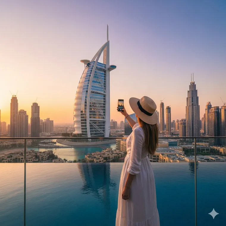 Adventure seekers can explore the Arabian Desert through desert safaris, dune bashing, camel rides, and hot air balloon tours. Visitors can also enjoy waterfront experiences at Dubai Marina, Jumeirah Beach, and Palm Jumeirah.